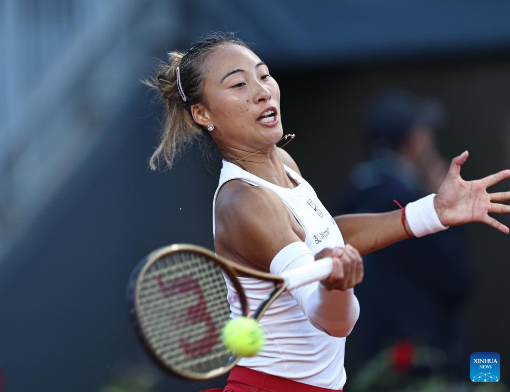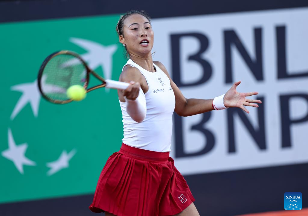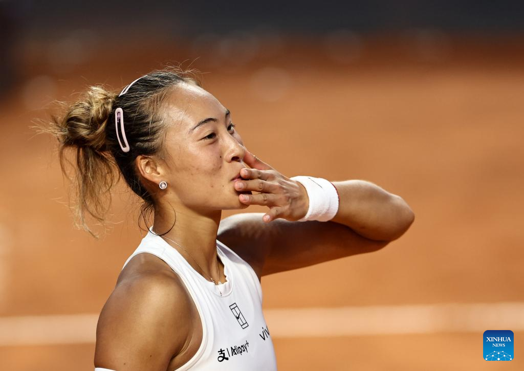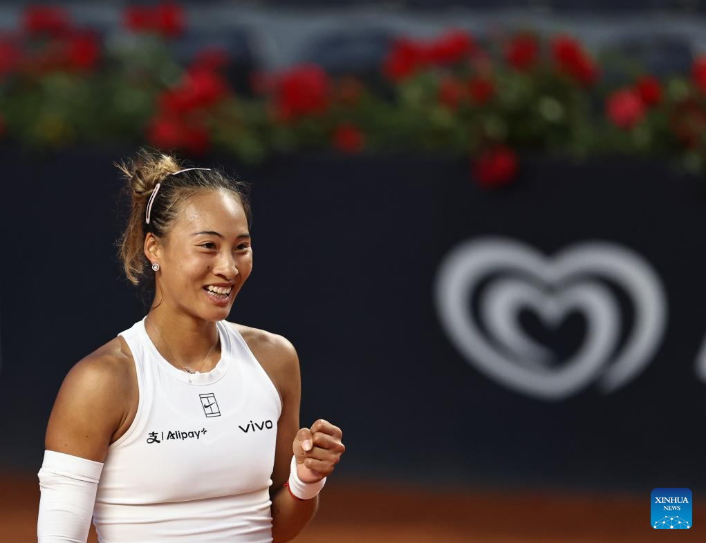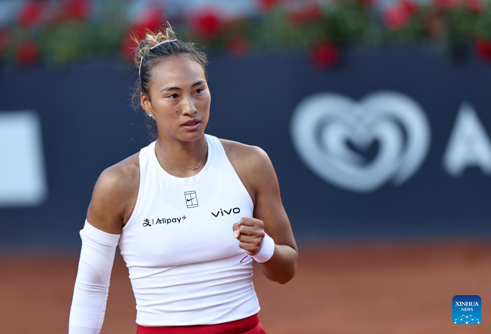 ROME, May 12 (Xinhua) -- China's Zheng Qinwen advanced to the quarterfinals of the WTA Italian Open for the third consecutive year after defeating former US Open champion Bianca Andreescu in straight sets 7-5, 6-1 on Monday.