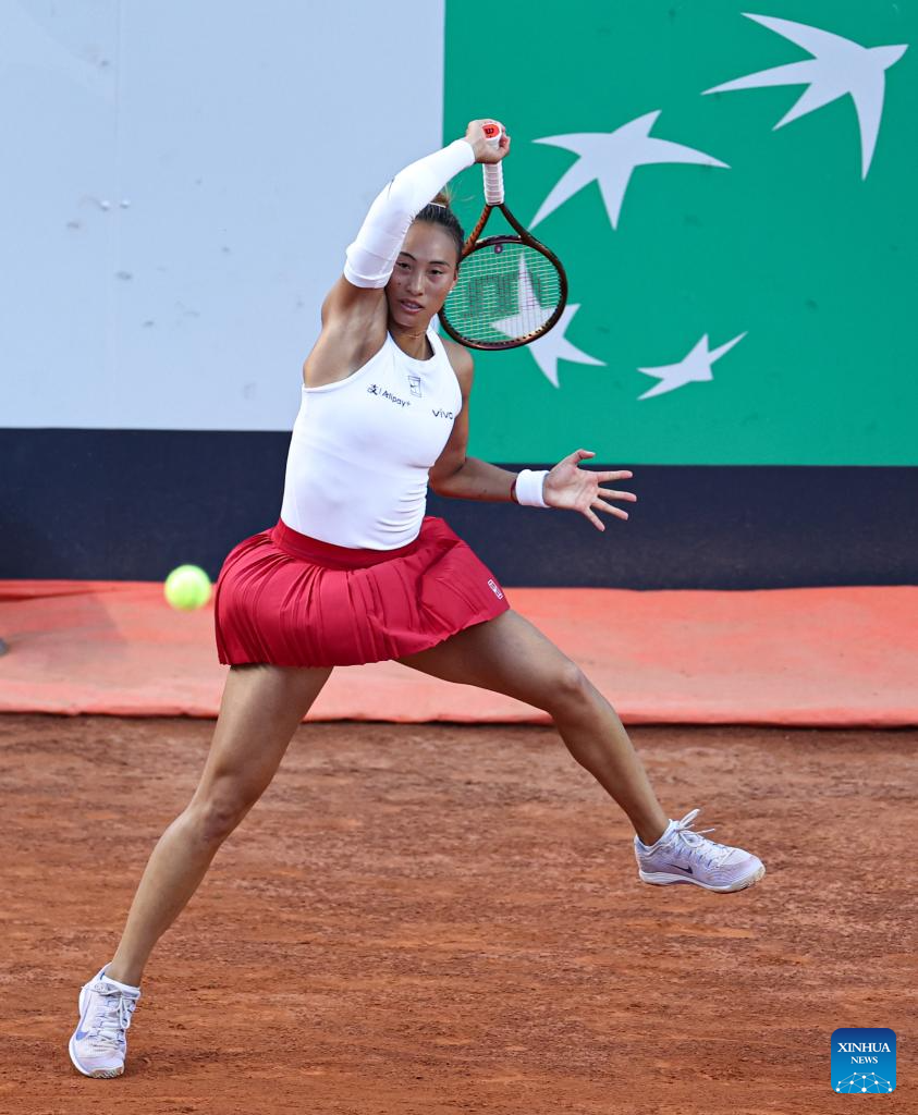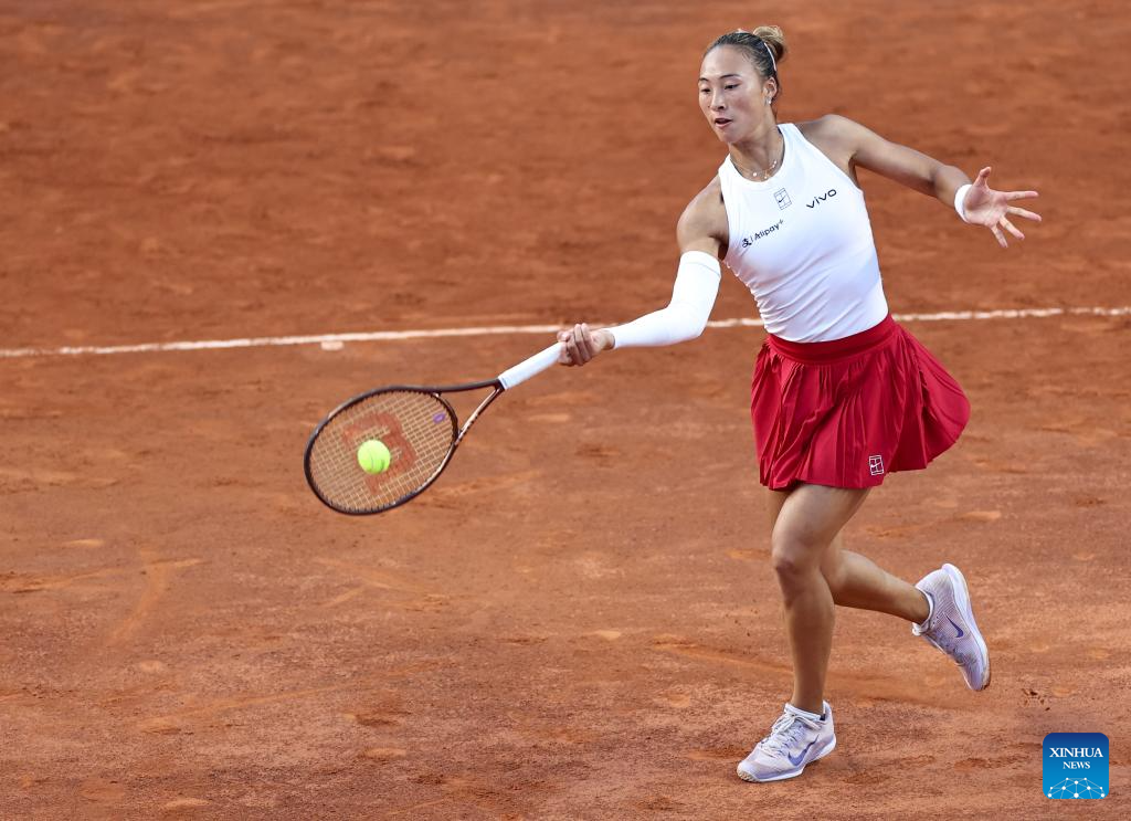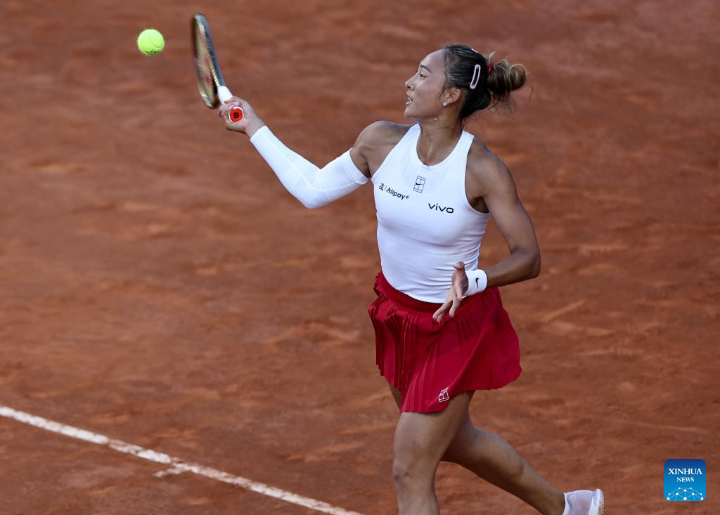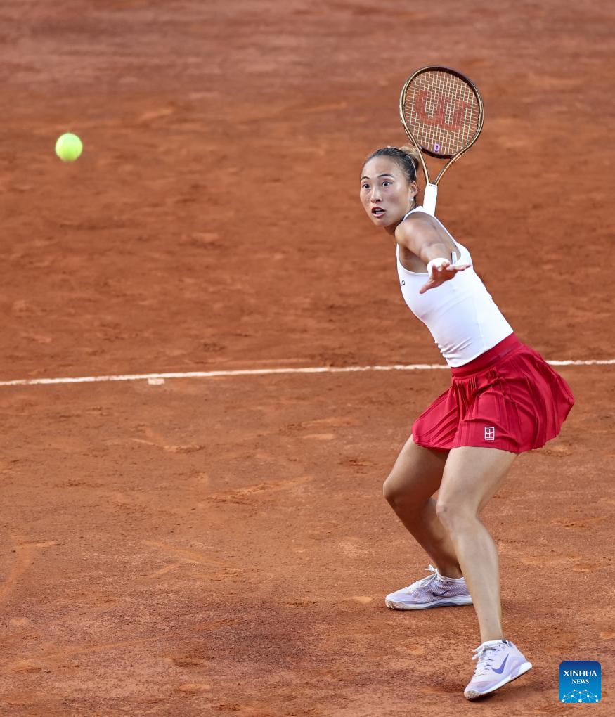 ROME, May 12 (Xinhua) -- China's Zheng Qinwen advanced to the quarterfinals of the WTA Italian Open for the third consecutive year after defeating former US Open champion Bianca Andreescu in straight sets 7-5, 6-1 on Monday.