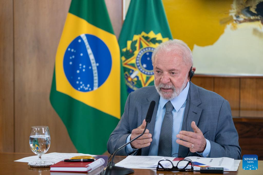 Brazilian President Luiz Inacio Lula da Silva speaks during a collective interview with Chinese media in Brasilia, Brazil, May 5, 2025. (Xinhua/Wang Tiancong)