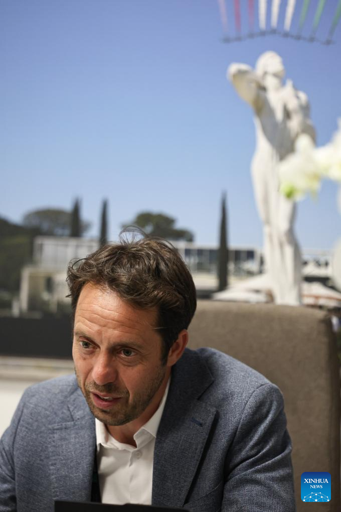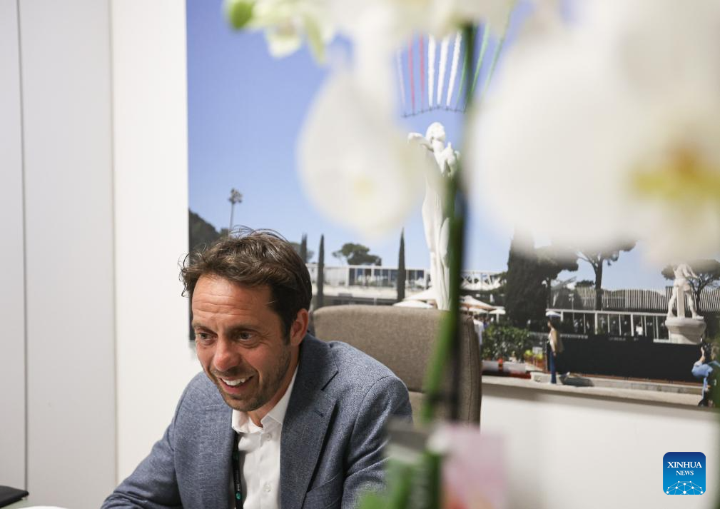 Italian Open tournament director Paolo Lorenzi is interviewed by Xinhua in Rome, Italy, May 12, 2025. (Xinhua/Li Jing)