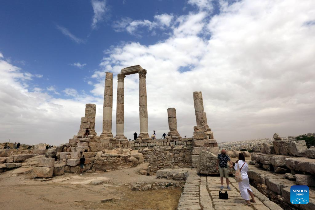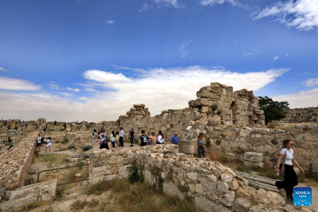 Tourists visit the Citadel archaeological site in Amman, Jordan, on May 13, 2025. (Photo by Mohammad Abu Ghosh/Xinhua)