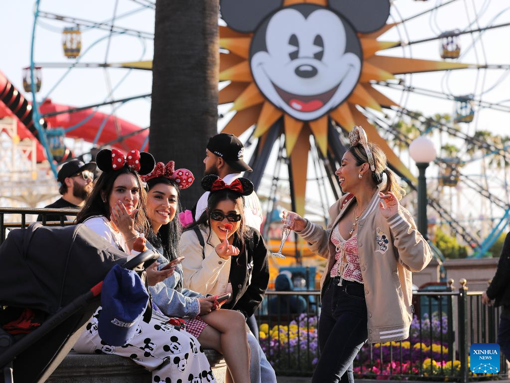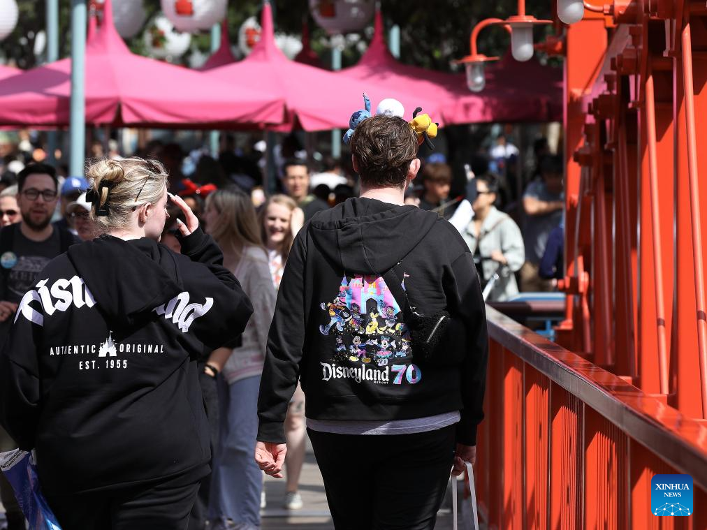 People visit Disney California Adventure Park in Anaheim, California, the United States, on May 13, 2025. Disneyland Resort in U.S. California launches its 70th anniversary celebration this week with a host of special events, new attractions, vibrant decorations, themed food and beverages, and commemorative merchandise. (Photo by Qiu Chen/Xinhua)