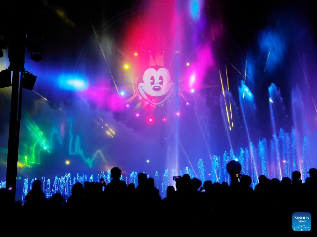 An all-new nighttime water show "World of Color Happiness!" is seen at Disney California Adventure Park in Anaheim, California, the United States, on May 13, 2025. Disneyland Resort in U.S. California launches its 70th anniversary celebration this week with a host of special events, new attractions, vibrant decorations, themed food and beverages, and commemorative merchandise. (Photo by Qiu Chen/Xinhua)