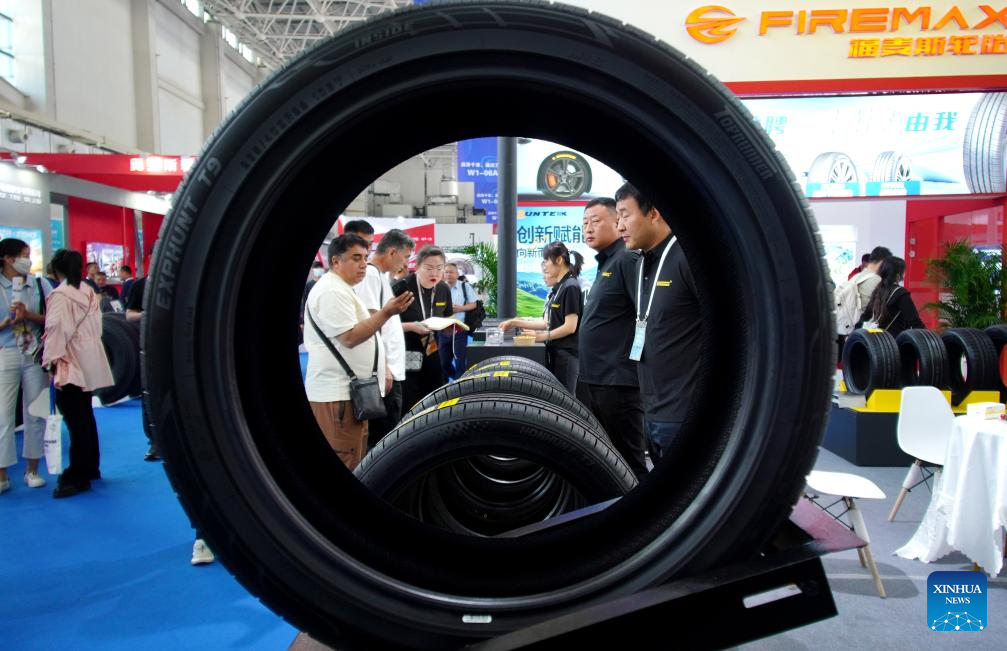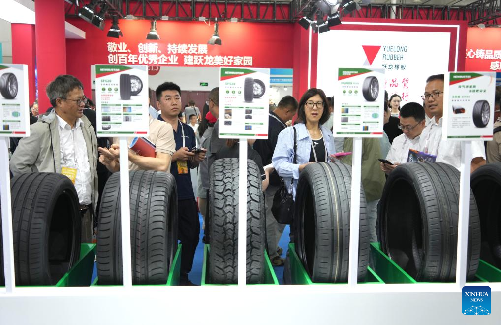 People visit the 15th China (Guangrao) International Rubber Tire & Auto Accessory Exhibition in Dongying City, east China's Shandong Province, May 15, 2025.