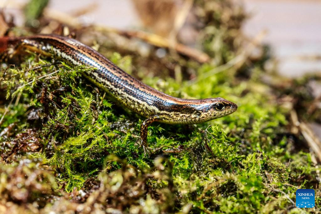 This undated file photo shows a new species of lizard. A research institute in Taiwan has discovered and named a new species of lizard unique to the island's mid-altitude cloud forest belt. This newly identified reptile, one of the smallest known in Taiwan, has been named in honor of a professor and a late doctoral student from Taiwan Normal University, in recognition of their outstanding contributions to the field. The research findings have been published in the international journal Herpetologica. (Xinhua)