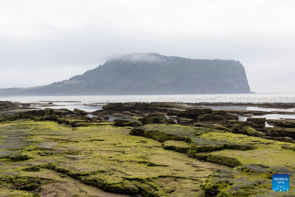 This photo shows a view of the Seongsan Ilchulbong peak on Jeju Island, South Korea, May 16, 2025. (Photo by Jun Hyosang/Xinhua)