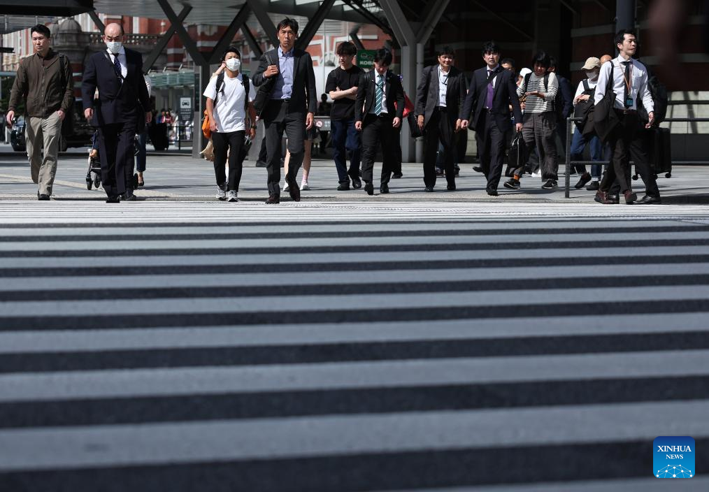 Pedestrians walk across a street near Tokyo Station in Tokyo, Japan, May 15, 2025. Japan's economy contracted an annualized 0.7 percent in the first quarter of 2025, marking the first contraction in four quarters, government data showed Friday. Quarter-on-quarter, real gross domestic product in the January-March period, adjusted for inflation, declined 0.2 percent from the October-December period, according to the Cabinet Office. (Xinhua/Jia Haocheng)