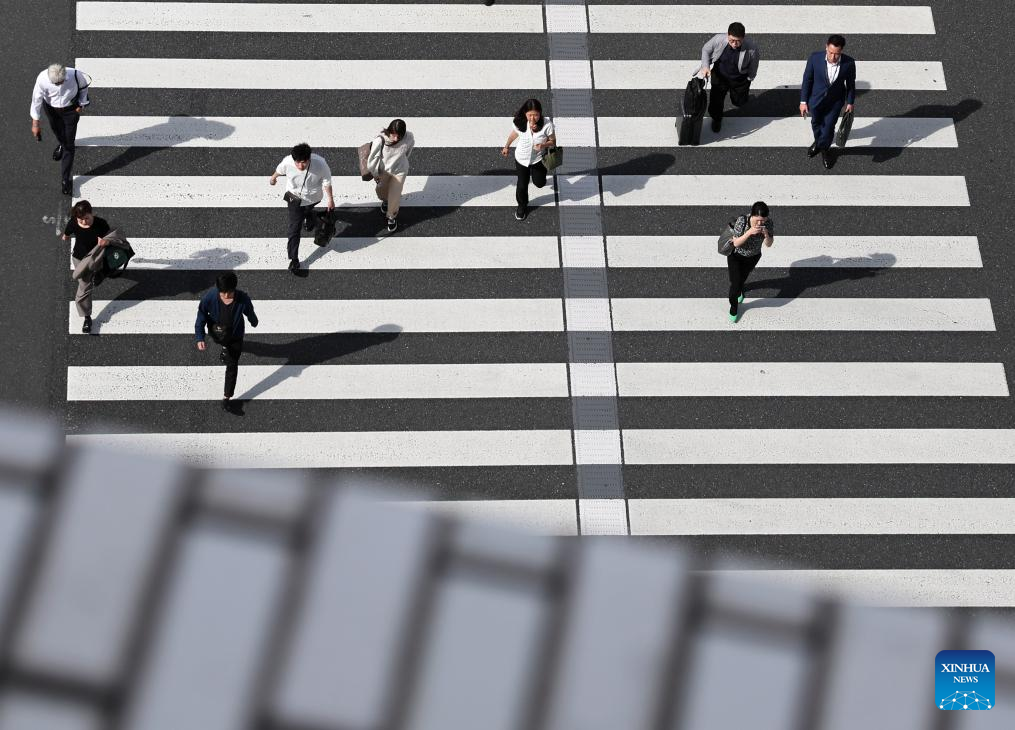 Pedestrians cross a street near Tokyo Station in Tokyo, Japan, May 15, 2025. Japan's economy contracted an annualized 0.7 percent in the first quarter of 2025, marking the first contraction in four quarters, government data showed Friday.