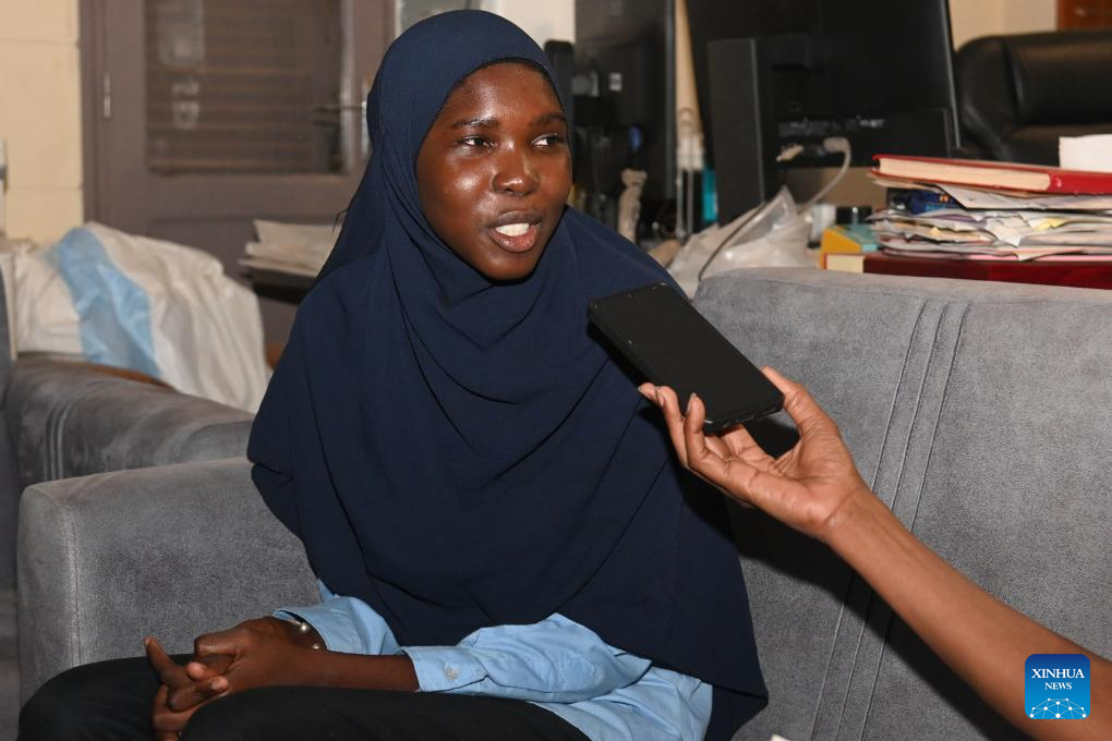 Photo taken on May 13, 2025 shows the Mariama Ba Elite High School's student Aminata Thiam interviewed in Dakar, Senegal. (Photo by Demba Papa Gueye/Xinhua)