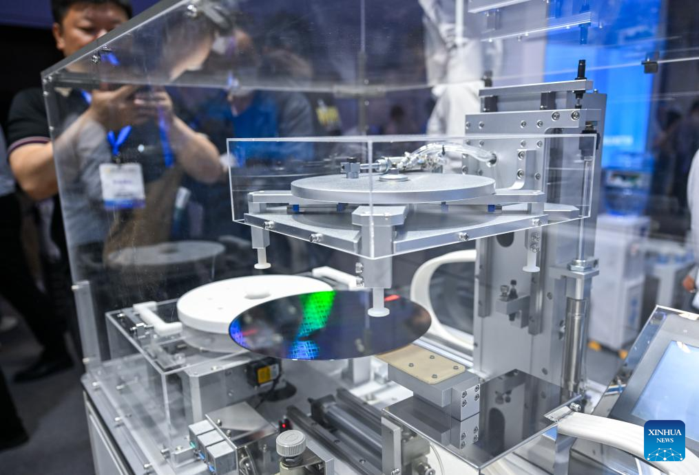 A set of wafer handling equipment is pictured at the 20th Optics Valley of China International Optoelectronic Exposition (OVC Expo), at the China Optics Valley Convention and Exhibition Center in Wuhan, central China's Hubei Province, on May 16, 2025. Starting on Friday for three days with more than 20 conferences and special events scheduled, the OVC Expo is expected to attract nearly 400 exhibitors and over 30,000 professional visitors, including many well-known domestic and foreign companies in the field of optoelectronic industry. The exhibition areas at the expo feature the cutting-edge technologies such as lasers, precision optics, "optics plus robot", etc., aiming to showcase the growth opportunities in the optoelectronic industry. (Xinhua/Du Zixuan)