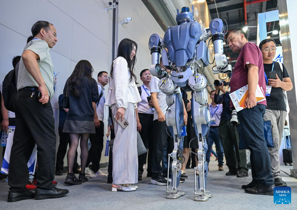 Visitors view a humanoid robot at the 20th Optics Valley of China International Optoelectronic Exposition (OVC Expo), at the China Optics Valley Convention and Exhibition Center in Wuhan, central China's Hubei Province, on May 16, 2025 Starting on Friday for three days with more than 20 conferences and special events scheduled, the OVC Expo is expected to attract nearly 400 exhibitors and over 30,000 professional visitors, including many well-known domestic and foreign companies in the field of optoelectronic industry. The exhibition areas at the expo feature the cutting-edge technologies such as lasers, precision optics, "optics plus robot", etc., aiming to showcase the growth opportunities in the optoelectronic industry. (Xinhua/Du Zixuan)