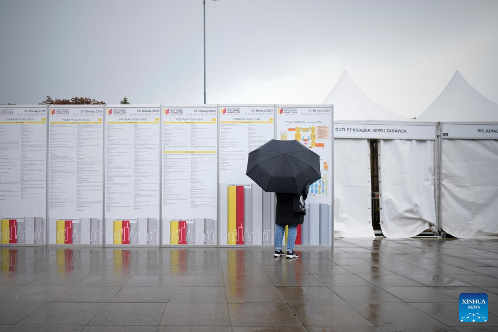 A visitor views information at the 2025 Warsaw International Book Fair in Warsaw, Poland, May 15, 2025. The event held here on May 15-18 has drawn over 620 publishers from 20 countries and regions. (Photo by Jaap Arriens/Xinhua)