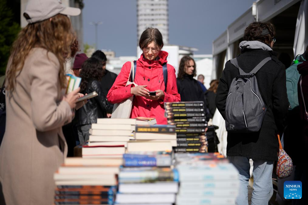 People choose books at the 2025 Warsaw International Book Fair in Warsaw, Poland, May 15, 2025. The event held here on May 15-18 has drawn over 620 publishers from 20 countries and regions. (Photo by Jaap Arriens/Xinhua)