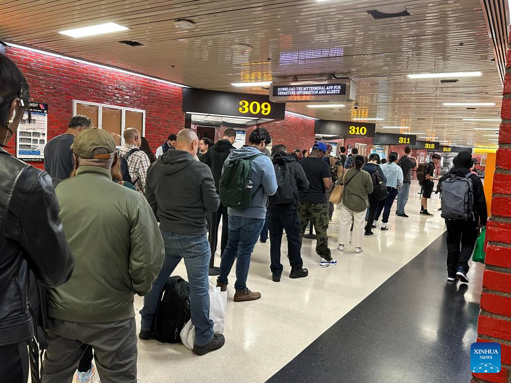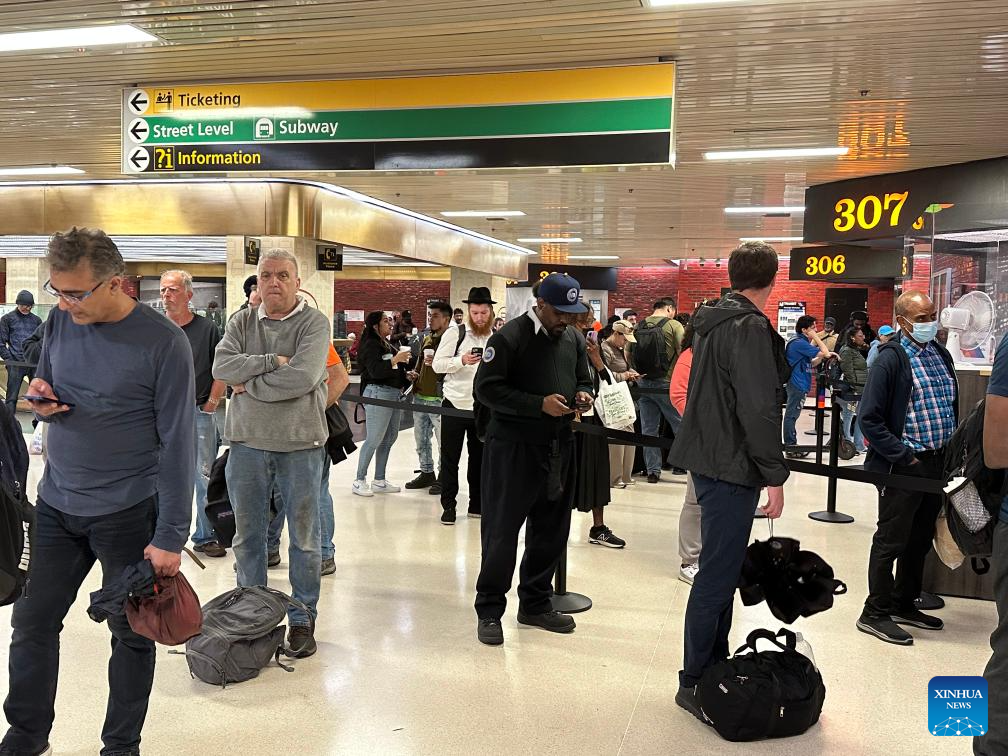 This photo taken with a mobile phone shows commuters heading for New Jersey waiting at the Port Authority Bus Terminal in New York City, the United States, on May 16, 2025. New Jersey's train system saw its first statewide strike in more than 40 years on Friday, affecting hundreds of thousands of passengers. (Photo by Qin Mingwei/Xinhua)