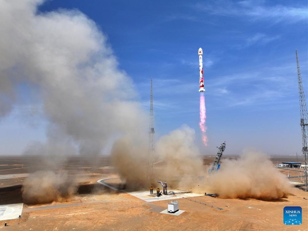 JIUQUAN, May 17 (Xinhua) -- A commercial rocket lifted off on Saturday in northwest China, successfully sending six satellites into space.