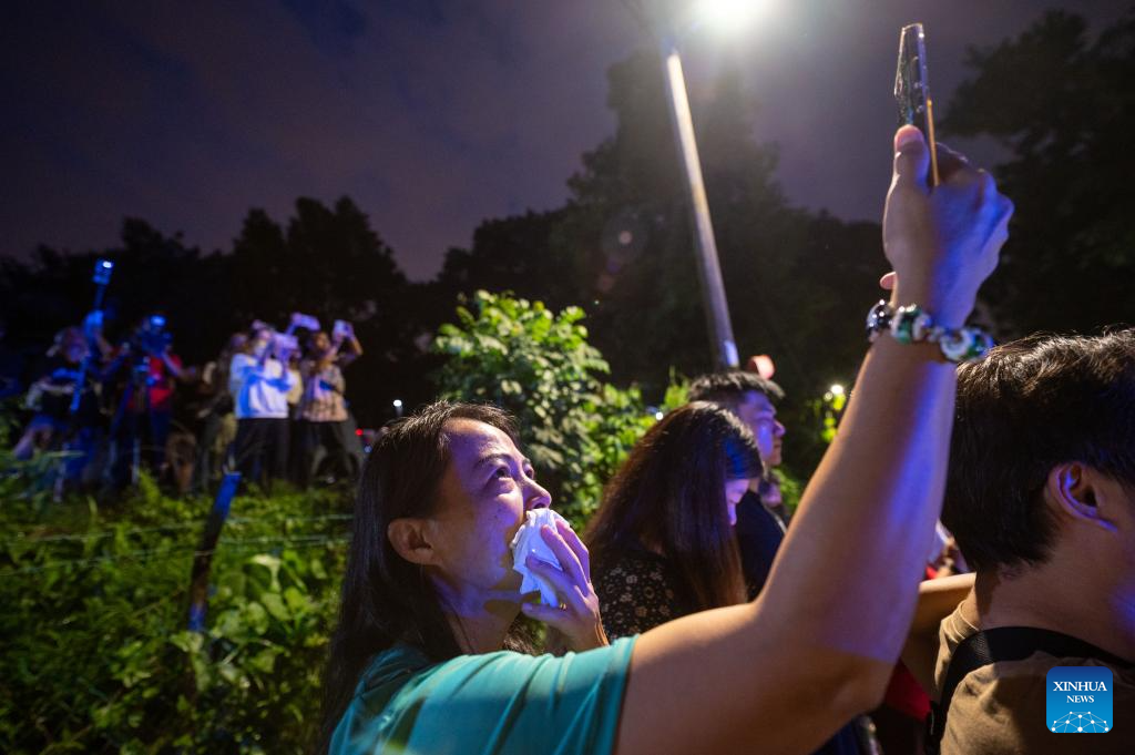 Local people bid farewell to giant panda pair Xing Xing and Liang Liang outside the Zoo Negara near Kuala Lumpur, Malaysia, May 18, 2025. Malaysians bid a tearful farewell on Sunday to giant panda pair Xing Xing and Liang Liang, who will return to China after their 11-year stay in the Southeast Asian country. Dozens of well-wishers and fans of the beloved panda pair gathered as early as 5 a.m. at the Giant Panda Conservation Center in Zoo Negara to see them off, with some travelling from other states to the national zoo located in the capital, Kuala Lumpur. (Photo by Chong Voon Chung/Xinhua)