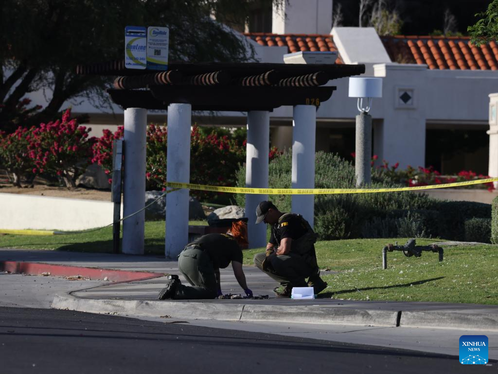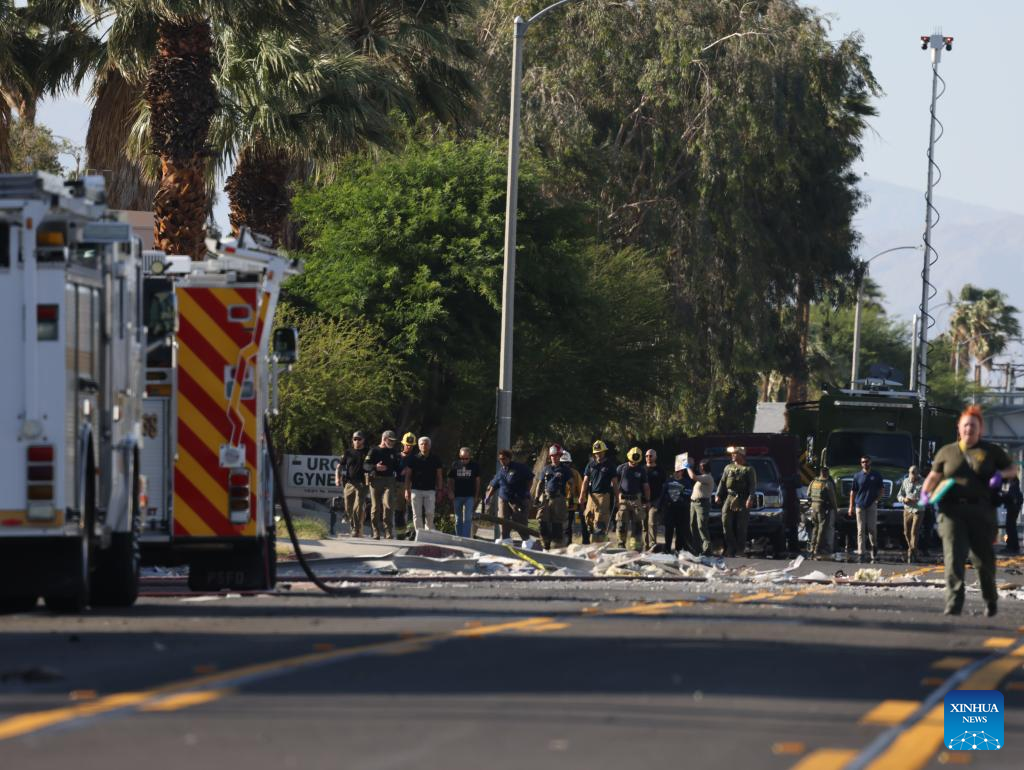 Authorities investigate near the site of an explosion in Palm Springs, California, the United States, on May 17, 2025. At least one person was killed and five others injured on Saturday in an explosion outside a fertility clinic in the desert resort city of Palm Springs, California, according to authorities. (Photo by Qiu Chen/Xinhua)