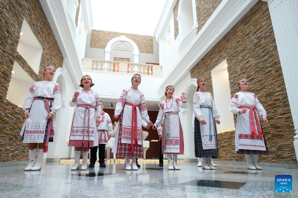 Young participants wearing traditional costumes sing songs at the National Art Museum of Belarus in Minsk, Belarus, on May 17, 2025. The National Art Museum of Belarus hosted a variety of activities to celebrate the International Museum Day which falls on May 18th. (Photo by Henadz Zhinkov/Xinhua)