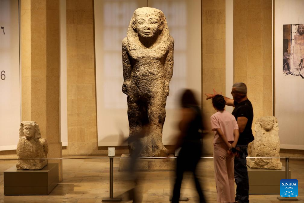 Visitors view an exhibit at Lebanon's National Museum in Beirut, Lebanon, on May 18, 2025. On the occasion of International Museum Day, Lebanon's National Museum in Beirut opened its door to the public for free on Sunday, inviting visitors to discover the country's ancient civilizations and archaeological treasures. (Xinhua/Bilal Jawich)