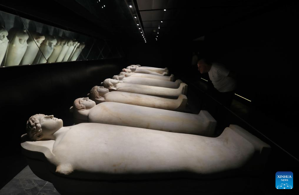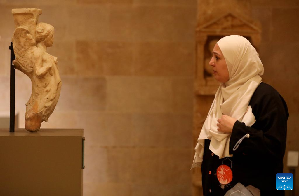 A visitor views an exhibit at Lebanon's National Museum in Beirut, Lebanon, on May 18, 2025. On the occasion of International Museum Day, Lebanon's National Museum in Beirut opened its door to the public for free on Sunday, inviting visitors to discover the country's ancient civilizations and archaeological treasures. (Xinhua/Bilal Jawich)