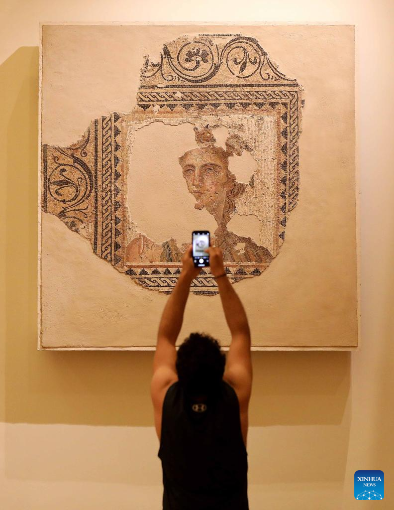 A visitor takes photos of an exhibit at Lebanon's National Museum in Beirut, Lebanon, on May 18, 2025. On the occasion of International Museum Day, Lebanon's National Museum in Beirut opened its door to the public for free on Sunday, inviting visitors to discover the country's ancient civilizations and archaeological treasures. (Xinhua/Bilal Jawich)