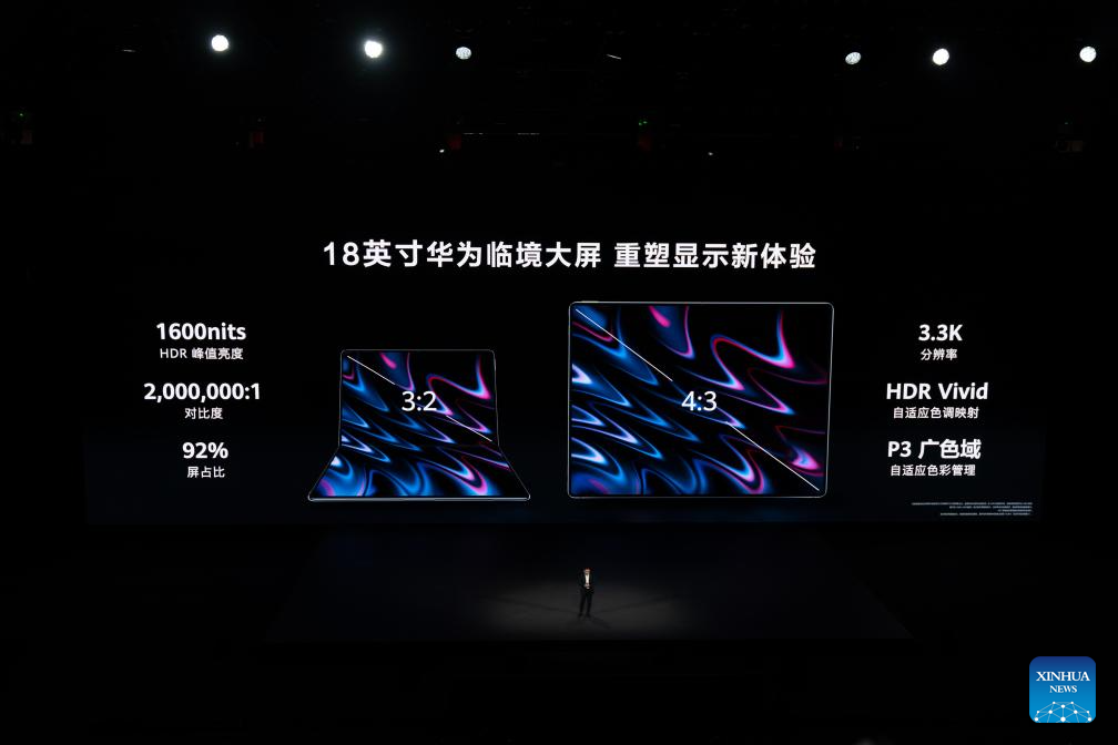 The launch of the Huawei MateBook Pro and MateBook Fold Ultimate Design signals the company's push to expand HarmonyOS beyond smartphones and tablets into a PC market long led by Microsoft's Windows and Apple's macOS. (Xinhua/Xu Bingjie)