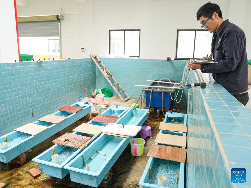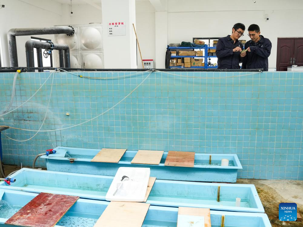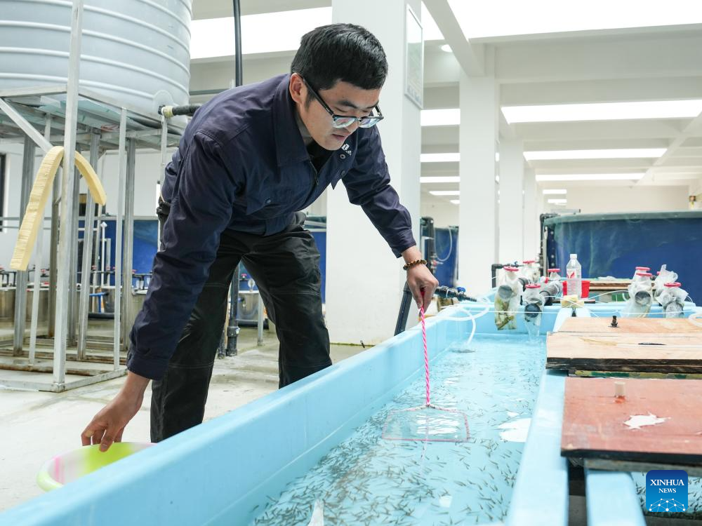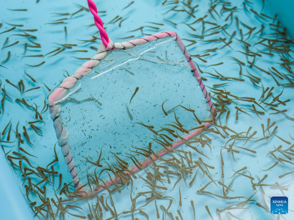 The survival rate of this latest batch of fry has stabilized at over 90 percent, which lays a solid ground for efforts to restore the wild population of this endangered fish species, and ensures high-quality reserves for future proliferation and release work. (Xinhua/Wang Xi)