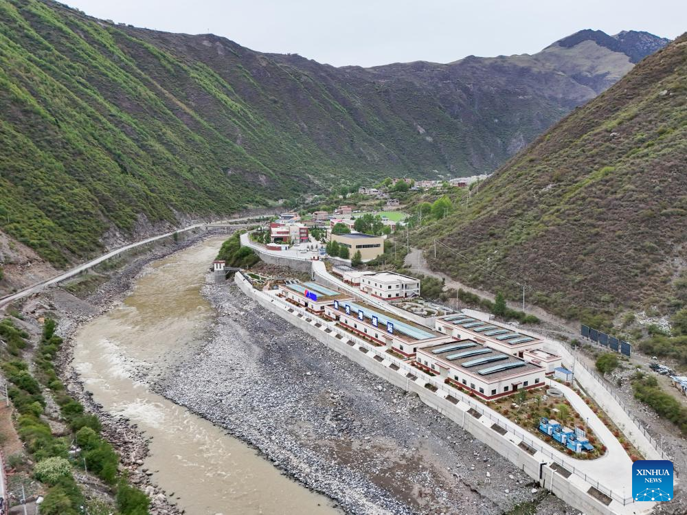 This aerial drone photo shows a fish proliferation and release station operated by a company under PowerChina Hydropower Development Group Co., Ltd. in Barkam City of Aba Tibetan and Qiang Autonomous Prefecture, southwest China's Sichuan Province, May 18, 2025.