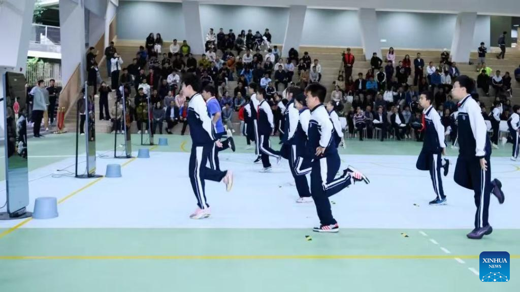 Students attend a PE class with AI-powered devices at Shenzhen Longgang District Arts and Science School in south China's Guangdong Province, Jan. 3, 2025. (Xinhua)