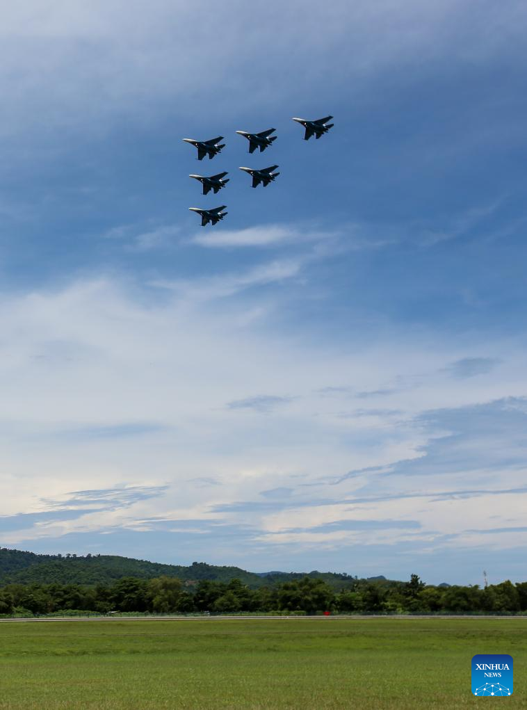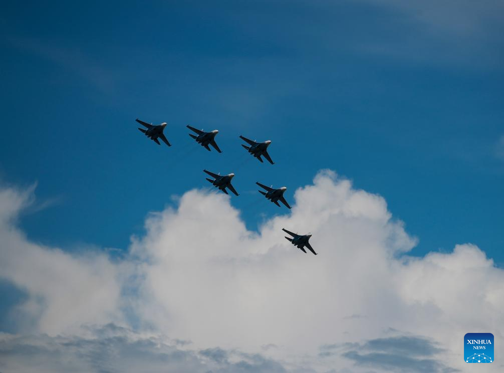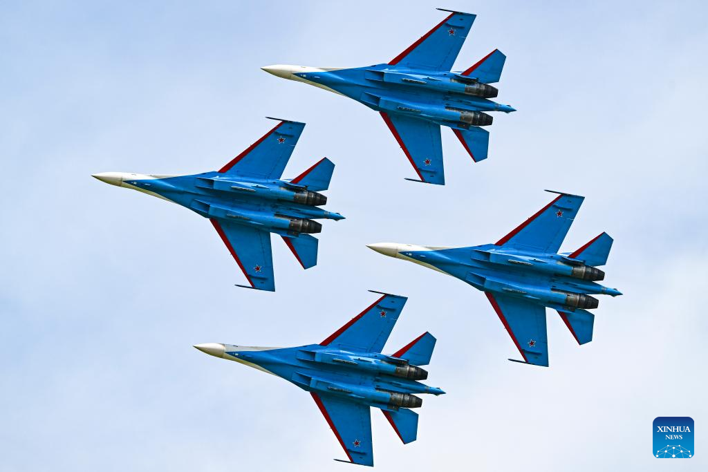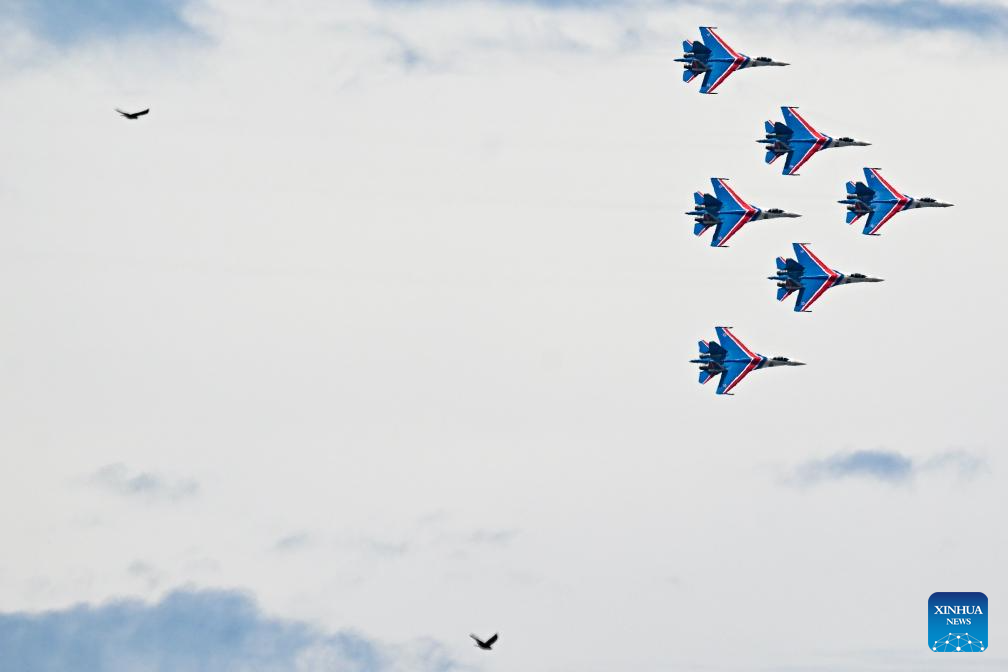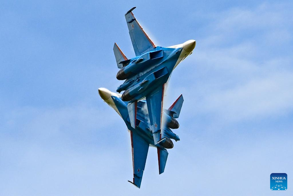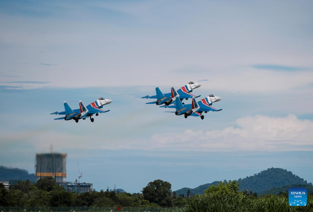 Russian Knights Aerobatic Team performs an aerobatic show at the opening ceremony of the 17th edition of the Langkawi International Maritime and Aerospace Exhibition (LIMA) in Langkawi, Malaysia, May 20, 2025. (Xinhua/Ma Ping)