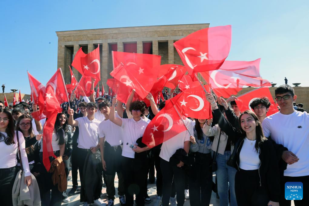 People gather to mark the Commemoration of Ataturk, Youth and Sports Day in front of Anitkabir, the mausoleum of Turkish Republic's founder Mustafa Kemal Ataturk, in Ankara, Türkiye, on May 19, 2025. (Mustafa Kaya/Handout via Xinhua)