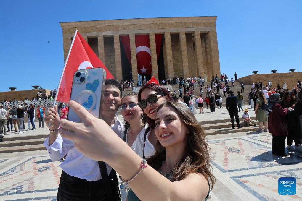 A woman takes selfies on the Commemoration of Ataturk, Youth and Sports Day in front of Anitkabir, the mausoleum of Turkish Republic's founder Mustafa Kemal Ataturk, in Ankara, Türkiye, on May 19, 2025. (Mustafa Kaya/Handout via Xinhua)