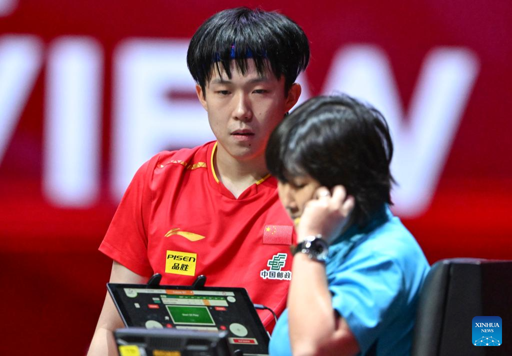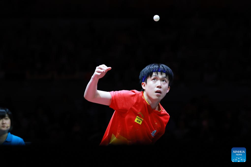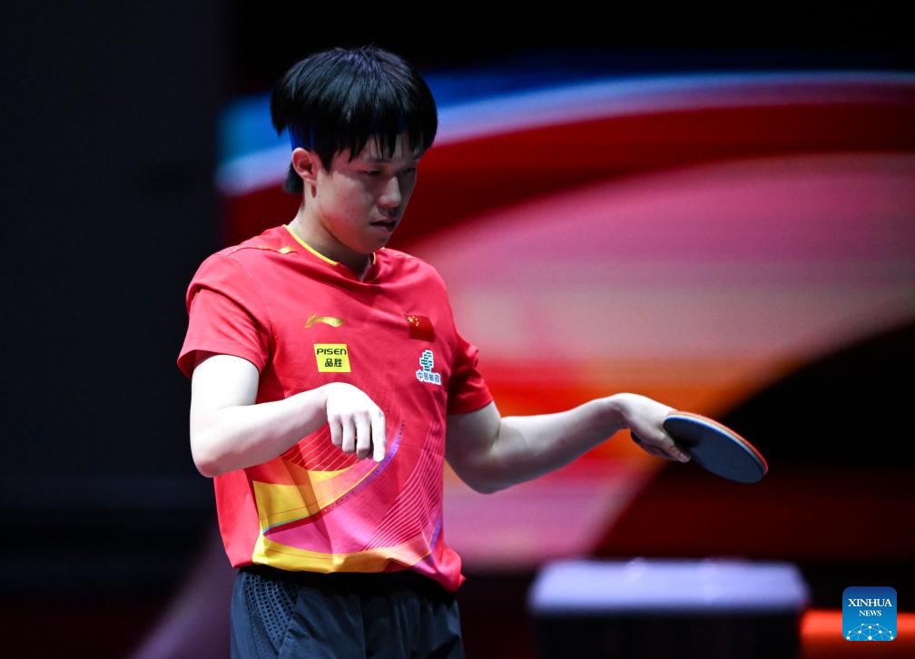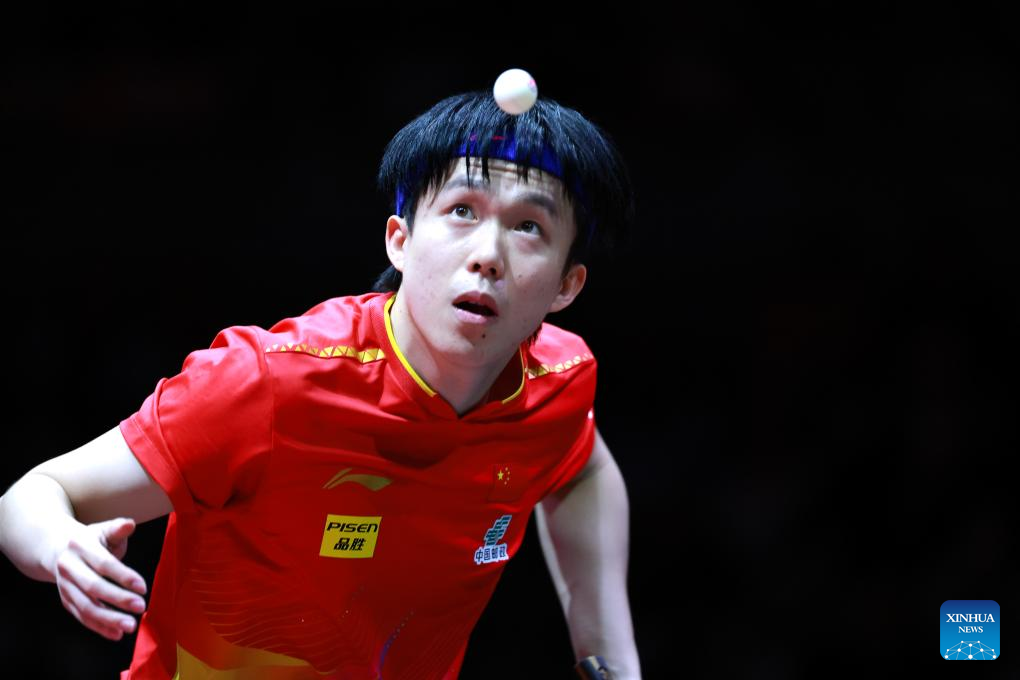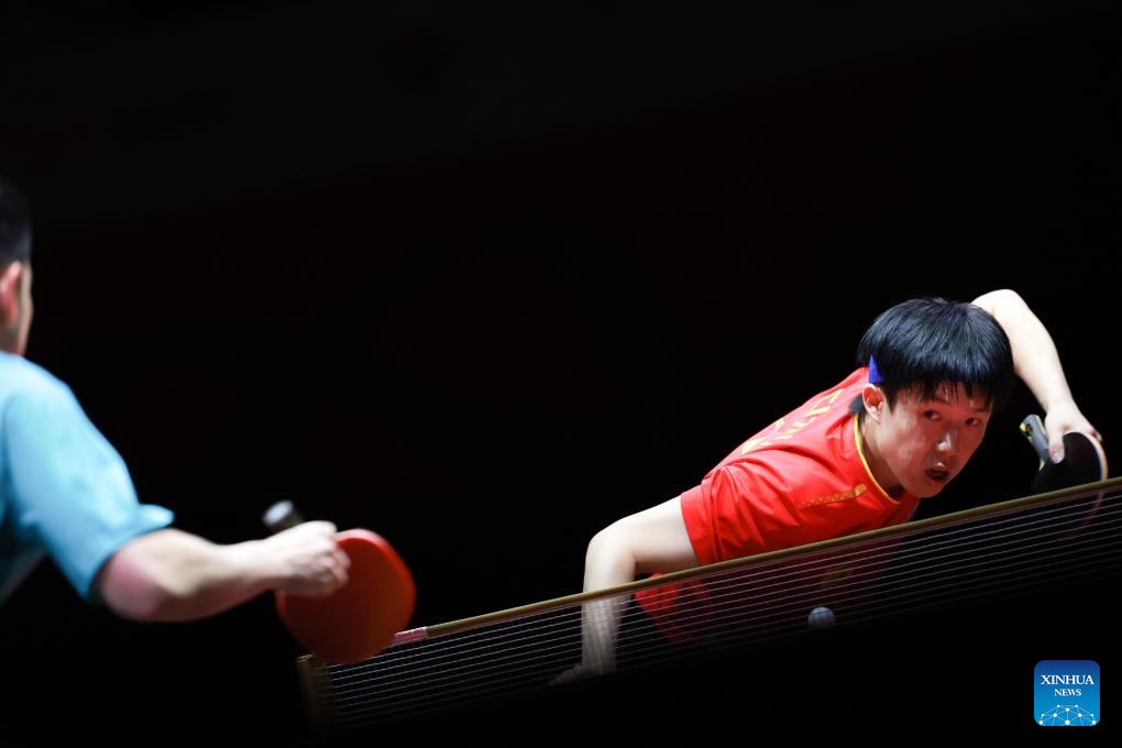 DOHA, May 20 (Xinhua) -- Wang Chuqin overpowered Wong Chun Ting to reach the fourth round of the World Table Tennis Championships on Tuesday.
