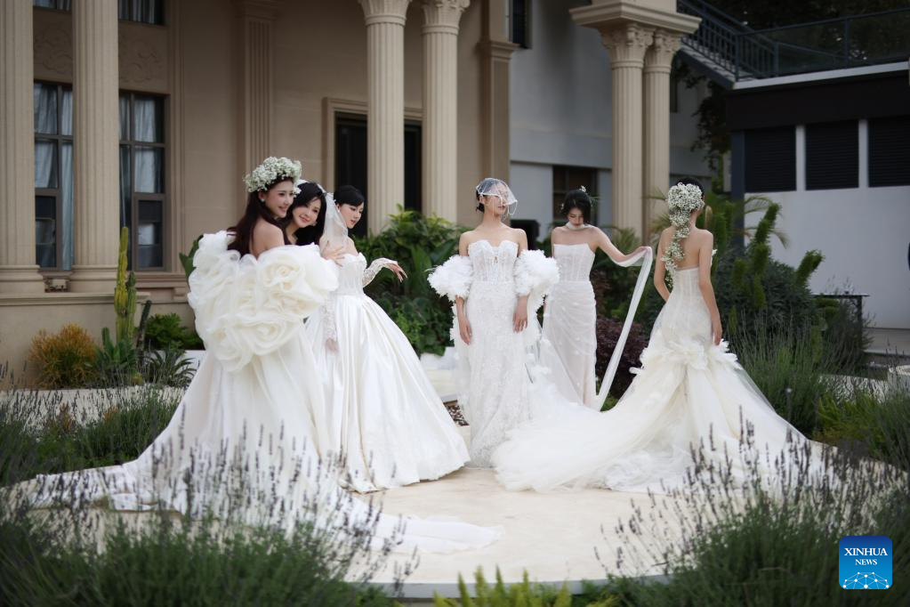 Women in wedding dresses are pictured at a wedding art center in Kunming, southwest China's Yunnan Province, May 20, 2025.(Xinhua)