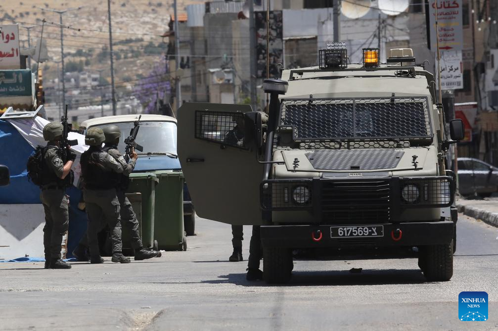 Members of Israeli forces are seen during a military operation in the Askar refugee camp, east of Nablus in the northern West Bank, on May 20, 2025. (Photo by Nidal Eshtayeh/Xinhua)