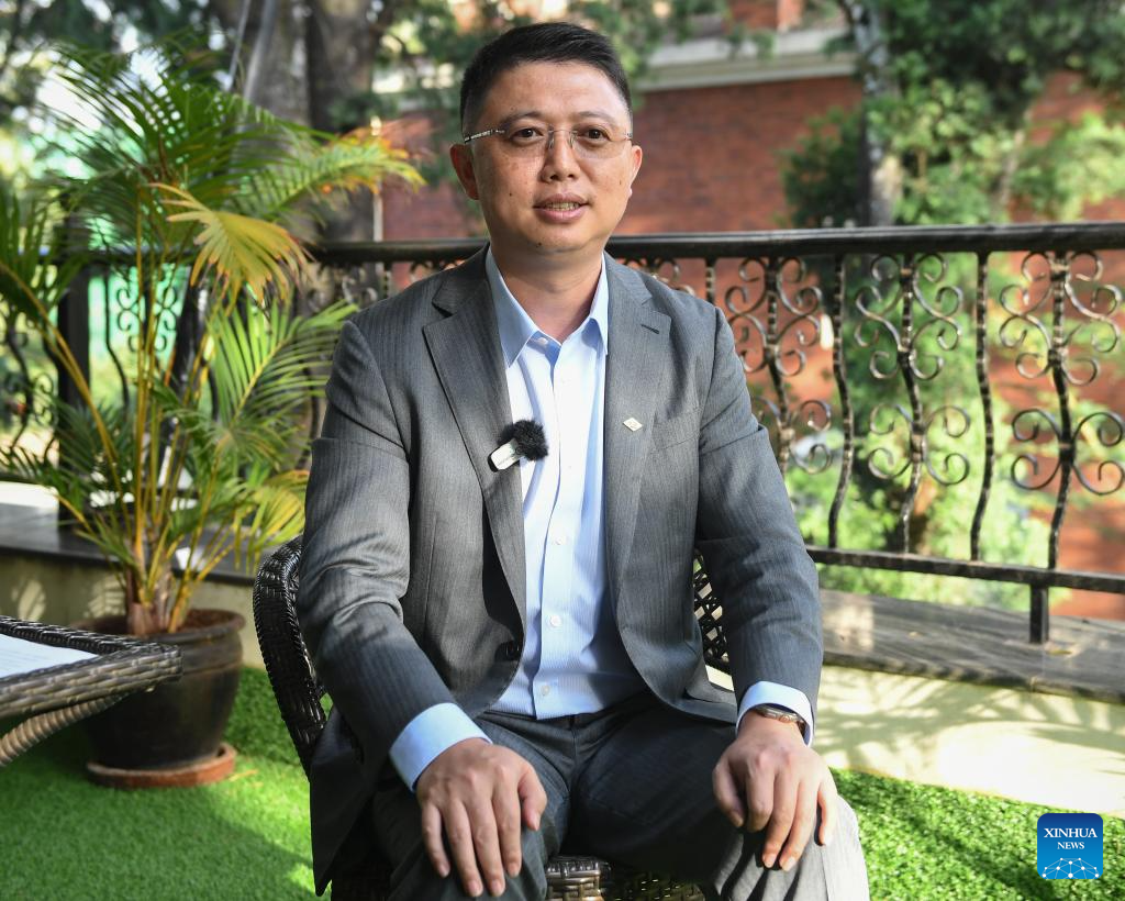 Yu Fujia, assistant general manager of China Road and Bridge Corporation's Kenya operations, is interviewed in Nairobi, Kenya, on May 16, 2025. Constructed by China Road and Bridge Corporation (CRBC), the Nairobi-Malaba Standard Gauge Railway is a key component of the Kenya Standard Gauge Railway Project with a total length of about 960 km upon completion. According to Yu Fujia, assistant general manager of CRBC's Kenya operations, the Nairobi-Malaba railway incorporates 14 ground-level wildlife crossings, 150 underground culverts, and six km of noise-dampening overpasses with light-permeable barriers, forming a three-dimensional corridor for animals. (Xinhua/Li Yahui)