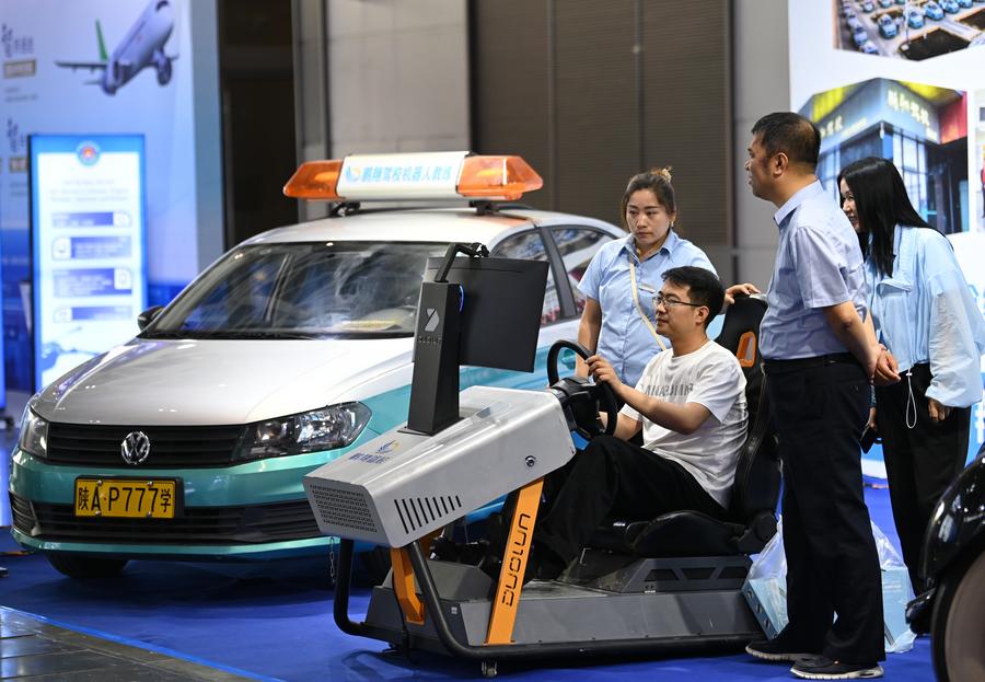 Visitors learn about aircraft products during the 9th Silk Road International Exposition and the Investment and Trade Forum for Cooperation between East & West China in Xi'an, northwest China's Shaanxi Province, May 21, 2025. (Xinhua/Li Yibo)A visitor experiences a driving simulator during the 9th Silk Road International Exposition and the Investment and Trade Forum for Cooperation between East & West China in Xi'an, northwest China's Shaanxi Province, May 21, 2025. (Xinhua/Li Yibo)Visitors learn about tea products from Hubei Province during the 9th Silk Road International Exposition and the Investment and Trade Forum for Cooperation between East & West China in Xi'an, northwest China's Shaanxi Province, May 21, 2025. (Xinhua/Li Yibo)Visitors learn about Georgian products during the 9th Silk Road International Exposition and the Investment and Trade Forum for Cooperation between East & West China in Xi'an, northwest China's Shaanxi Province, May 21, 2025. (Xinhua/Li Yibo)Visitors learn about Tajik products during the 9th Silk Road International Exposition and the Investment and Trade Forum for Cooperation between East & West China in Xi'an, northwest China's Shaanxi Province, May 21, 2025. (Xinhua/Li Yibo)
