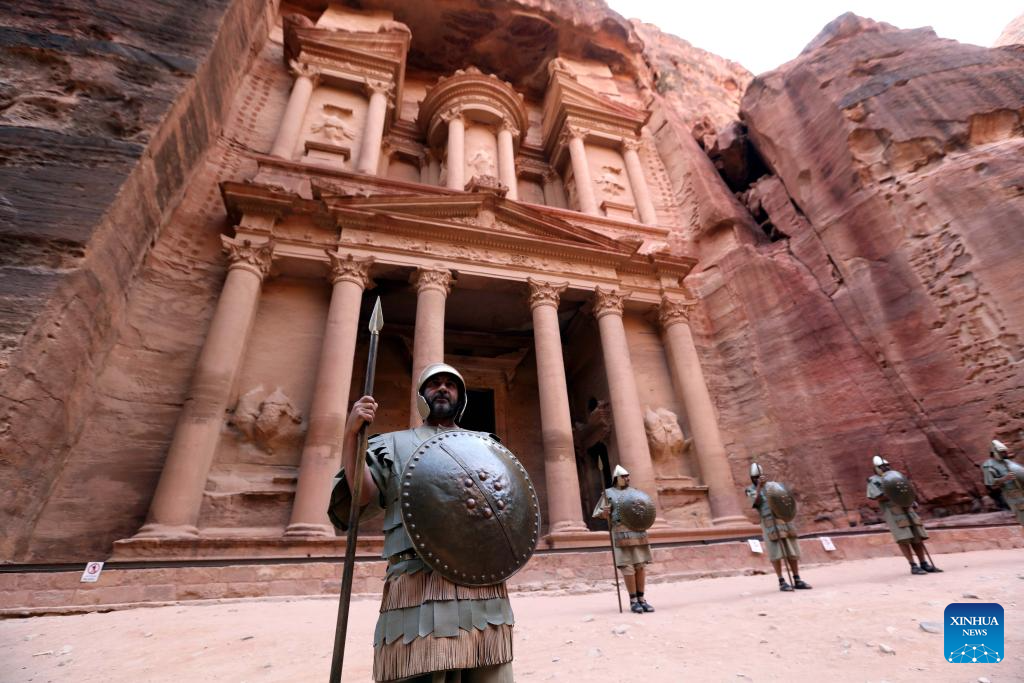 This photo taken on May 20, 2025 shows a view of the Treasury Building at the archaeological site of Petra, Jordan. Jordan's Petra is a unique archaeological Nabataean city carved into rock, recognized as a UNESCO World Heritage Site since 1985. (Photo by Mohammad Abu Ghosh/Xinhua)