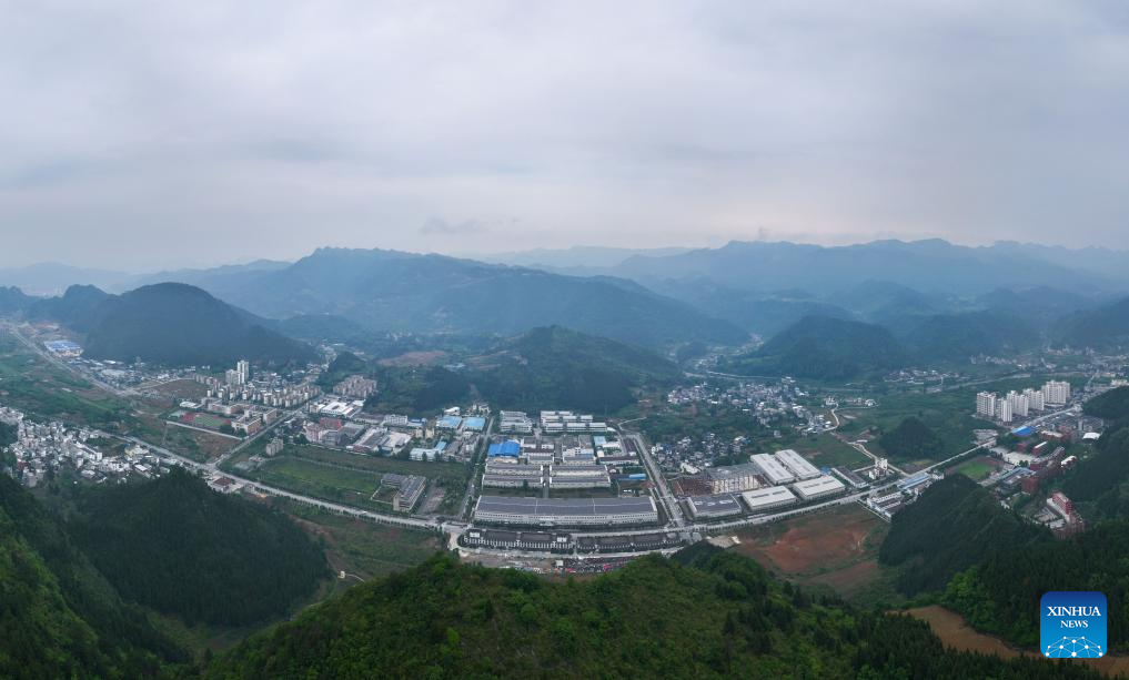 An aerial drone photo taken on May 14, 2025 shows the industrial park of Guizhou Gui Tea Group Co., Ltd. in Jiangkou County, southwest China's Guizhou Province.