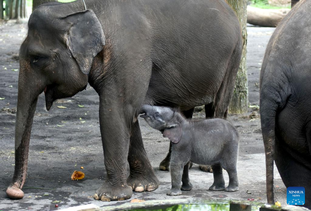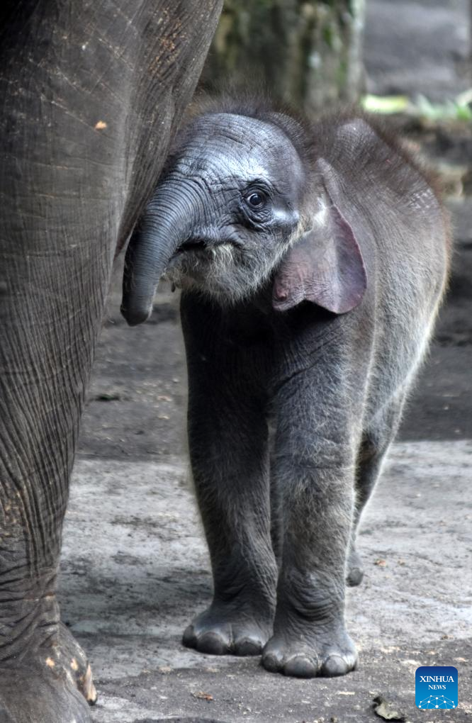 A month-old female baby Sumatran elephant is seen in Batu Secret Zoo, Batu, East Java, Indonesia, May 21, 2025. A female baby Sumatran elephant was born on April 21 here. (Photo by Aman Rochman/Xinhua)
