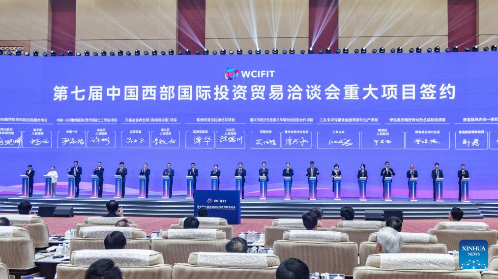 CHONGQING, May 22 (Xinhua) -- The 7th Western China International Fair for Investment and Trade kicked off in southwest China's Chongqing Municipality on Thursday, with on-site project agreements exceeding 200 billion yuan (about 27.8 billion U.S. dollars).