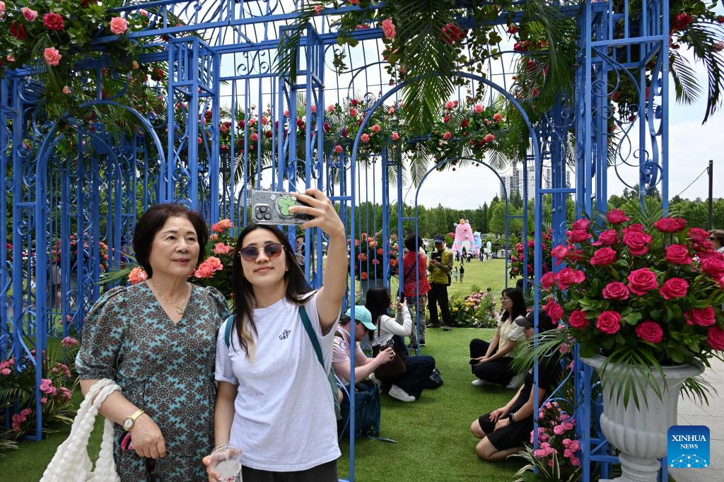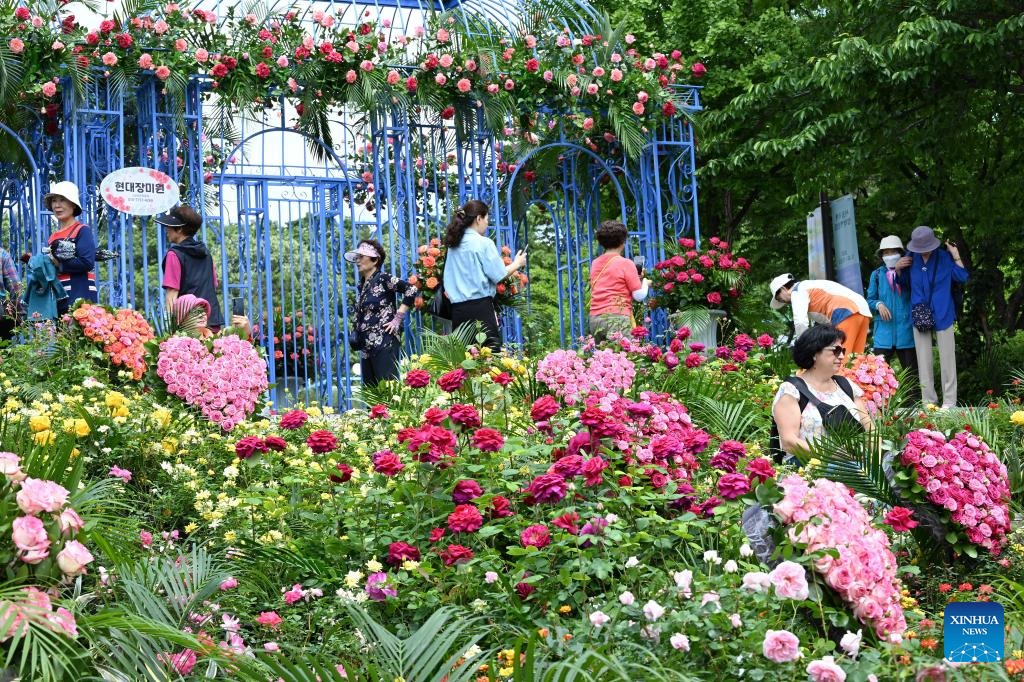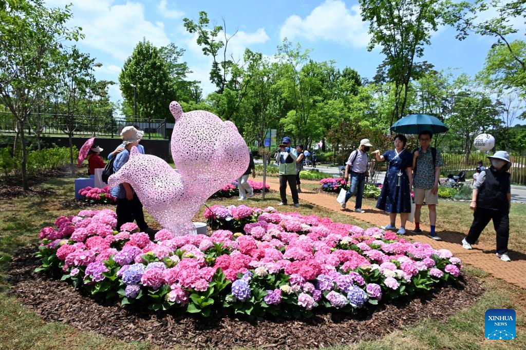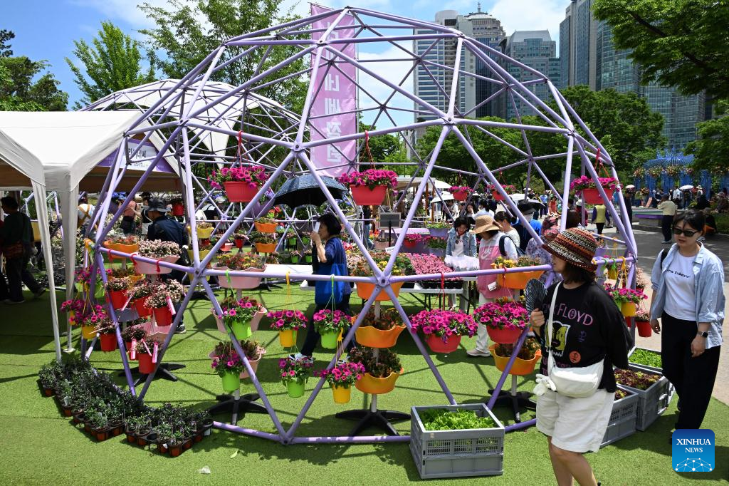People visit the 10th Seoul International Garden Show at Boramae Park in Seoul, South Korea, May 22, 2025. (Photo by Jun Hyosang/Xinhua)