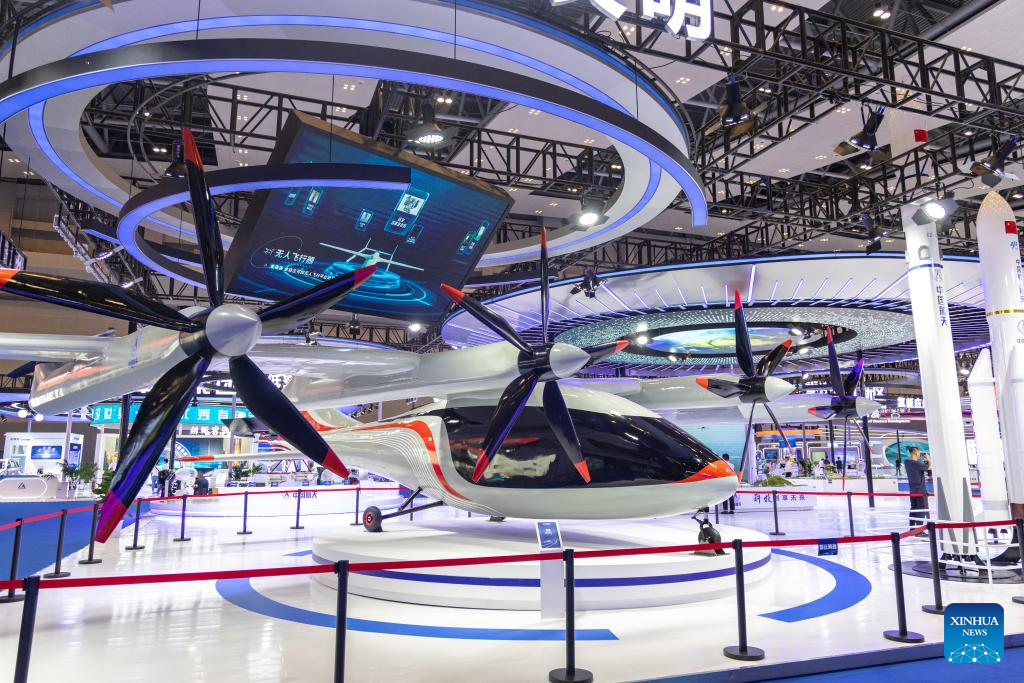 An unmanned aerial vehicle is pictured at the 7th Western China International Fair for Investment and Trade in southwest China's Chongqing Municipality, May 23, 2025. The 7th Western China International Fair for Investment and Trade kicked off in southwest China's Chongqing Municipality on Thursday. Various products related to low-altitude economy attracted the attention of visitors at the fair. (Xinhua/Huang Wei)