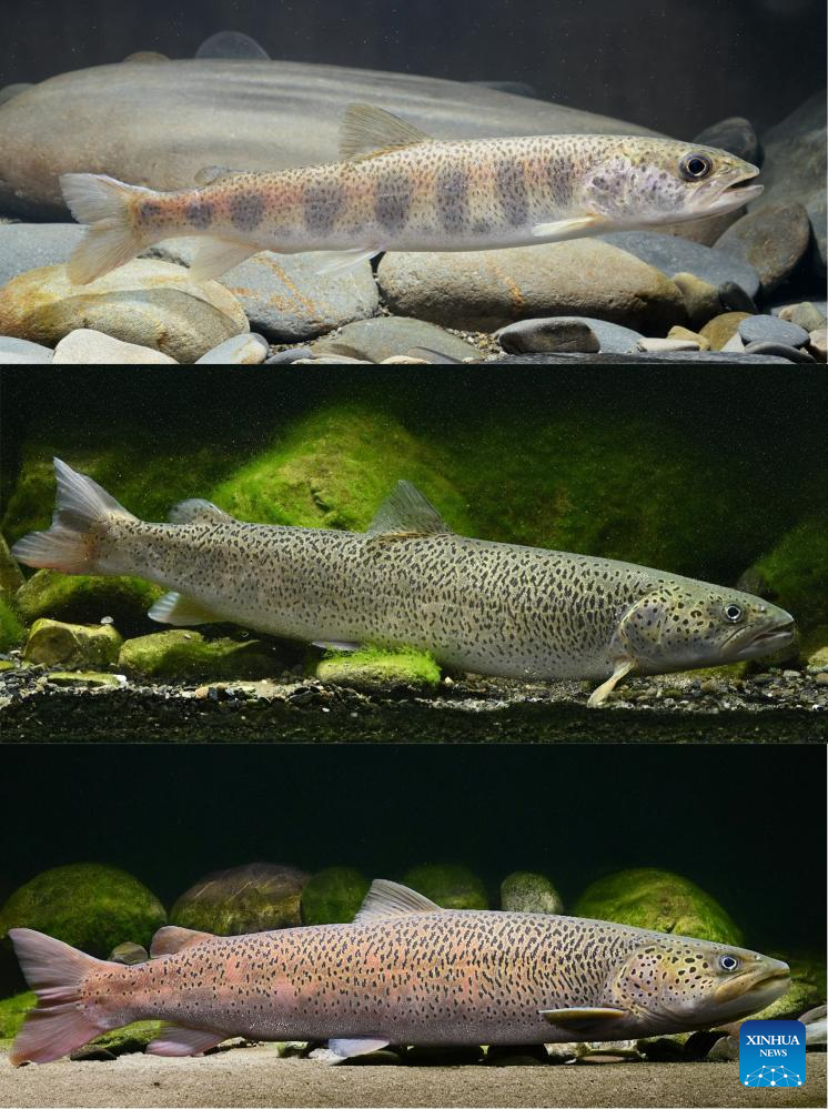 This undated file combo photo shows different growth phase of a fish under top-level state protection that Yu Yi photographed. (Xinhua)
