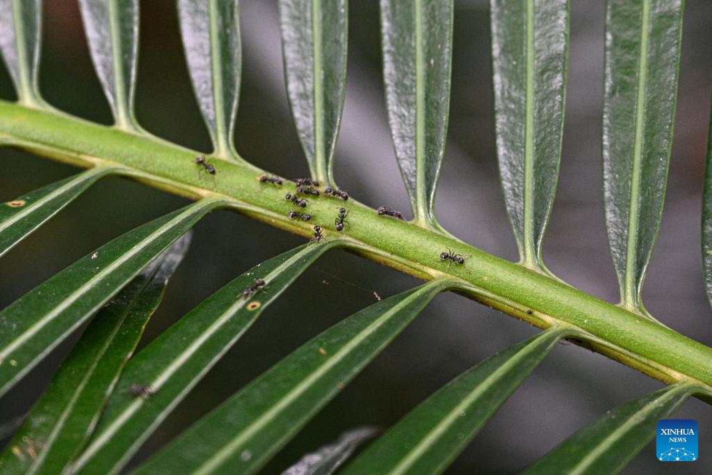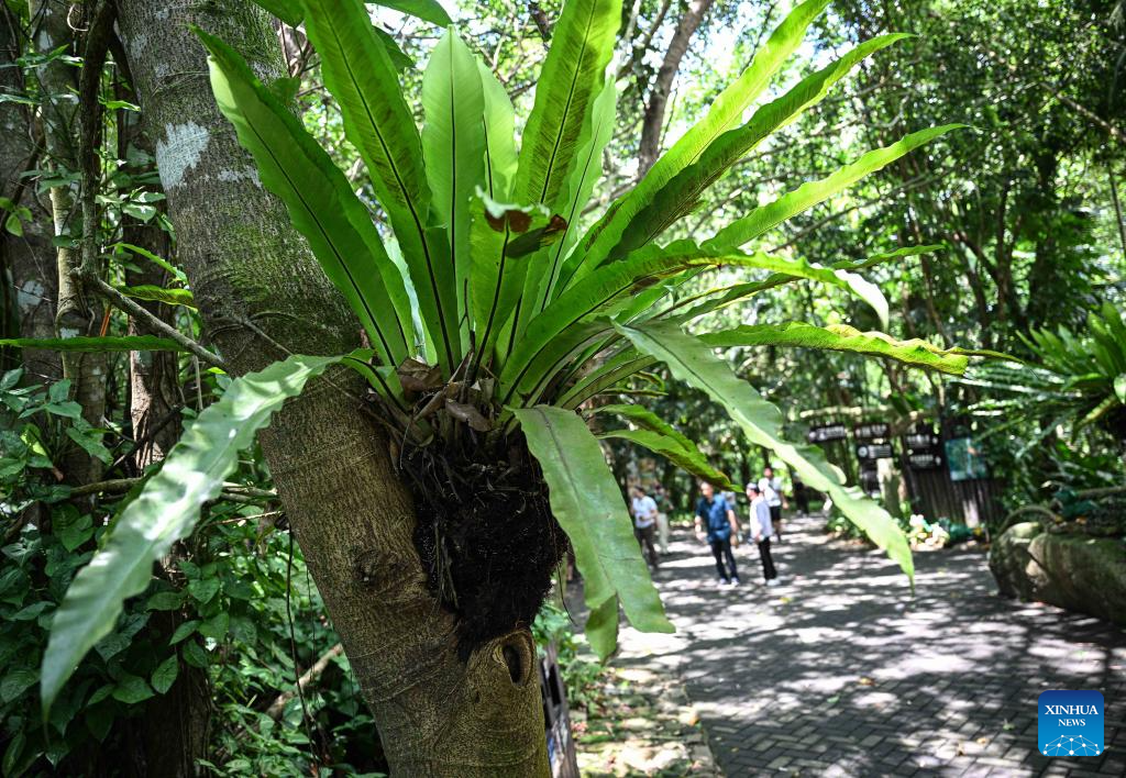 This photo taken on May 20, 2025 shows Hainan cycas at the Yanoda Rain Forest Cultural Tourism Zone in Baoting Li and Miao Autonomous County, south China's Hainan Province. The Yanoda Rain Forest Cultural Tourism Zone boasts over 1,400 species of trees and more than 80 varieties of tropical flowers. (Xinhua/Pu Xiaoxu)