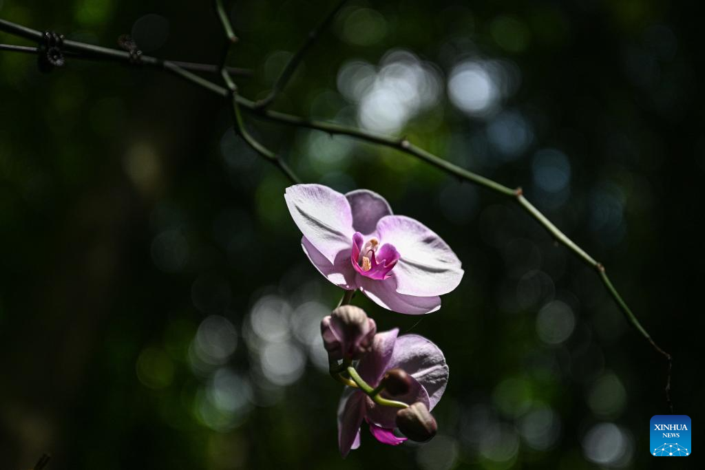 This photo taken on May 20, 2025 shows orchid at the Yanoda Rain Forest Cultural Tourism Zone in Baoting Li and Miao Autonomous County, south China's Hainan Province. The Yanoda Rain Forest Cultural Tourism Zone boasts over 1,400 species of trees and more than 80 varieties of tropical flowers. (Xinhua/Pu Xiaoxu)