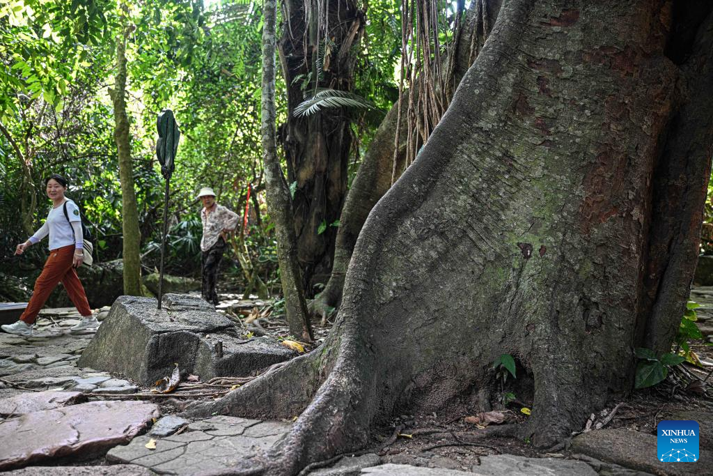 This photo taken on May 20, 2025 shows tree roots extending on the ground at the Yanoda Rain Forest Cultural Tourism Zone in Baoting Li and Miao Autonomous County, south China's Hainan Province. The Yanoda Rain Forest Cultural Tourism Zone boasts over 1,400 species of trees and more than 80 varieties of tropical flowers. (Xinhua/Pu Xiaoxu)