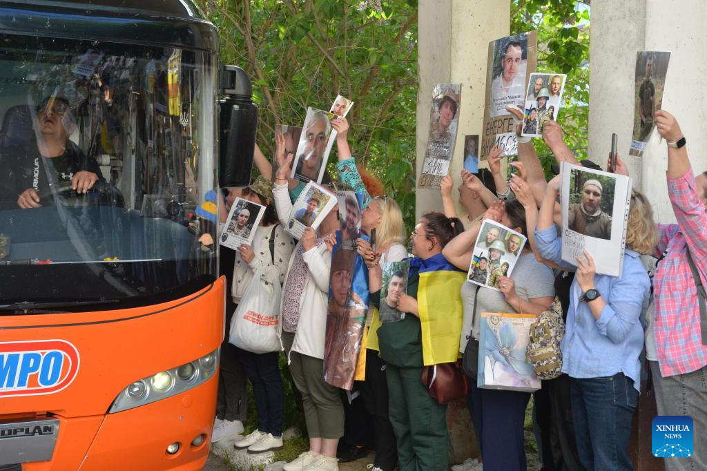 KIEV, May 23 (Xinhua) -- Ukrainian President Volodymyr Zelensky on Friday announced that 390 Ukrainians returned home from captivity during the first stage of prisoner exchange with Russia under the "1,000 for 1,000 formula".