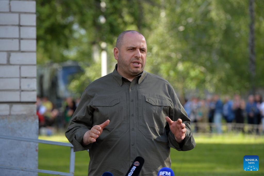 Ukrainian Defense Minister Rustem Umerov welcomes the released Ukrainians back to Ukraine, May 23, 2025. Ukrainian President Volodymyr Zelensky on Friday announced that 390 Ukrainians returned home from captivity during the first stage of prisoner exchange with Russia under the "1,000 for 1,000 formula".