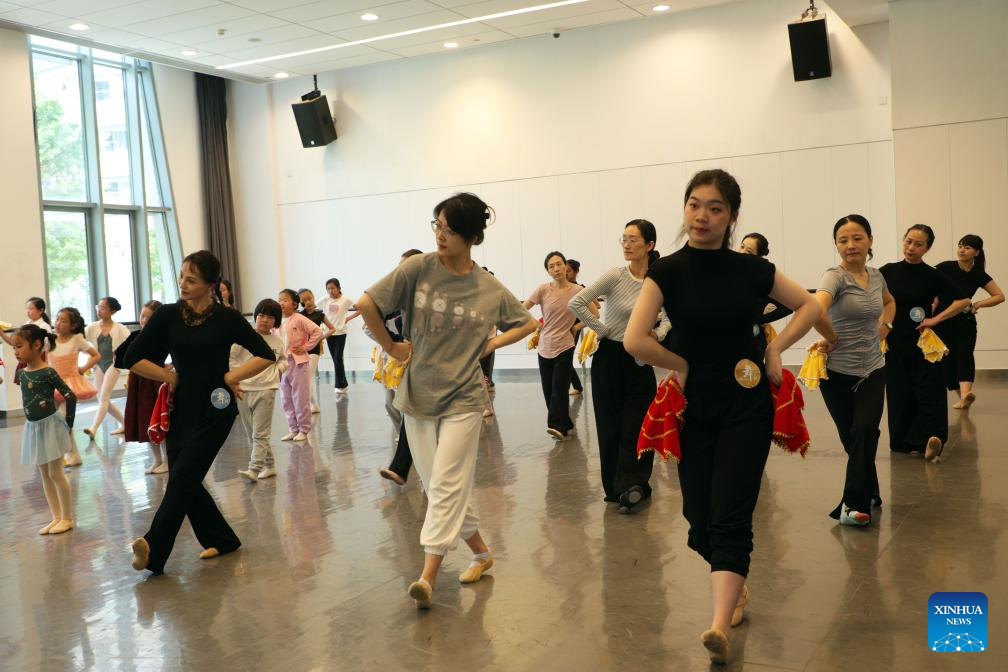Enthusiasts experience a professional class of a dance school during a public event for International Dance Day 2025 at the Shanghai International Dance Center in east China's Shanghai, April 26, 2025. In recent years, Shanghai has been promoting the construction of key public cultural facilities and cultural landmarks with Shanghai characteristics.